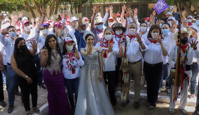 Miércoles. Con la representación del Dr. Rubén Rocha Moya, candidato a gobernador de Sinaloa por los partidos Morena y PAS, la Dra. Eneyda Rocha Ruiz asistió a los festejos de fundación del Ejido 5 de Mayo, en el municipio de Ahome, la acompañó el Lic. Gerardo Vargas Landeros, candidato a presidente municipal de Ahome y su señora esposa Mónica de Landeros; al llegar fueron recibidos por gobernadores indígenas, danzantes y habitantes del pueblo quienes los acompañaron a su templo para realizar su ceremonia de purificación.