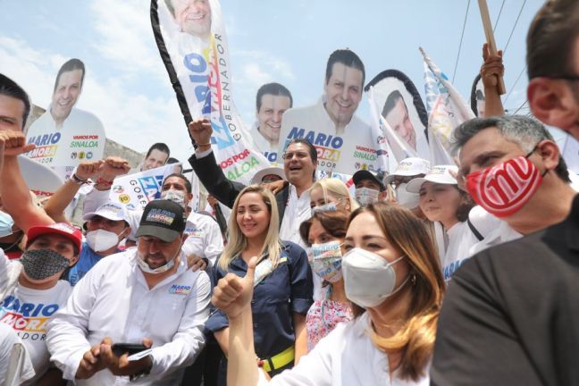 Aquí Mario Zamora habla de las y los sinaloenses, que son mucha pieza para los perversos. “Y vamos a ganar bien ganado”. Aquí se oye ¡Mario gobernador! ¡Mario gobernador! ¡Mario gobernador!”