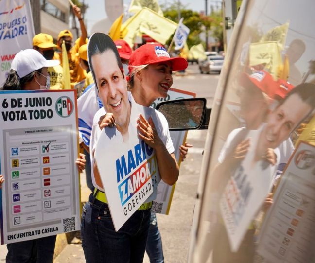 Culiacán. Intensa activación en cruceros de Culiacán sostuvo Wendy Ibarra de Zamora, acompañando a su esposo el Candidato a Gobernador Mario Zamora por la coalición Va Por Sinaloa.