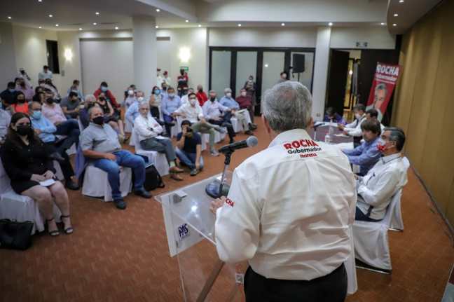 Culiacán, Sinaloa. El candidato de los partidos MORENA y PAS a la gubernatura de Sinaloa, Rubén Rocha Moya, se comprometió a apoyar con más recursos a la ciencia y tecnología, ya que actualmente en el presupuesto del Gobierno del Estado solo se destina el 0.1 por ciento del total de Producto Interno Bruto que se genera en la entidad.