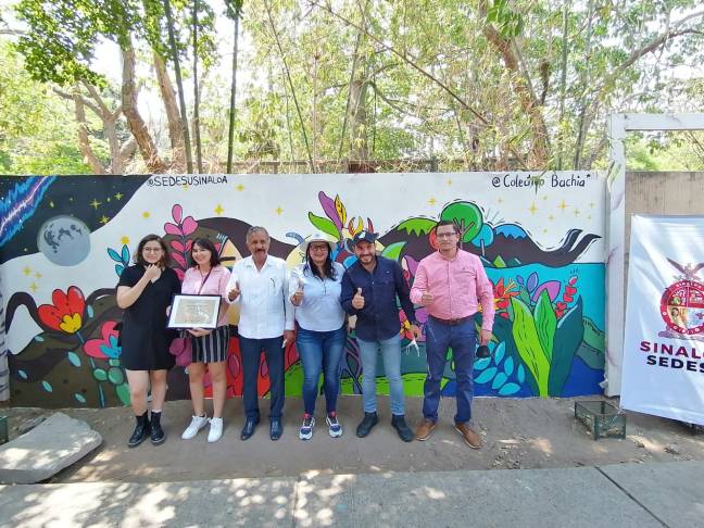 Acompañada por el Alcalde Jesús Estrada Ferreiro, Isabel Mendoza Camacho reconoció la aportación de los más de 95 grupos de la sociedad civil organizada que participan en todo Sinaloa con distintas acciones en favor de las playas, ríos, áreas naturales protegidas y espacios comunes “Muchas gracias al colectivo Bachía, Greengold y Más Planeta que junto al equipo de la Secretaría realizaron este bello mural para promover la acción conjunta para hacer frente al cambio climático”.