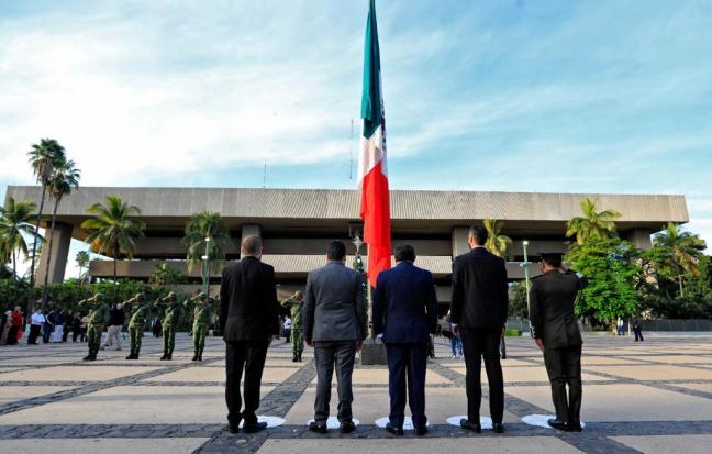 Culiacán, Sin. Autoridades civiles y militares encabezaron la mañana de este miércoles los actos protocolarios y honores de ordenanza por el 157 Aniversario de la Batalla de San Pedro y por el 206 Aniversario luctuoso del General Don José María Morelos y Pavón , en la Plaza Cívica de la Unidad Administrativa de Gobierno del Estado, donde los representantes de los poderes Ejecutivo, Legislativo y Judicial, la comandancia de la IX zona militar y del Ayuntamiento de Culiacán hicieron acto de presencia para llevar a cabo el Izamiento de Bandera a media asta y entonar el Himno Nacional Mexicano.