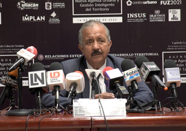 Culiacán, Sin. El alcalde Lic. Jesús Estrada Ferreiro, presidió la rueda de prensa para dar a conocer los pormenores de la realización del Primer Foro Temático, Capítulo Culiacán, Sinaloa denominado “En la ruta hacia la Cumbre Internacional del Hábitat de América Latina y el Caribe 2022”: Agenda 2030, Nueva Agenda Urbana y Gestión Inteligente del Territorio.