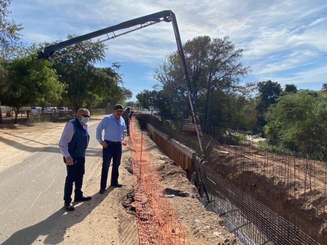 Sanalona, Culiacán, Sinaloa. Los trabajos de rehabilitación de la carretera que cruza el poblado de Sanalona están próximos a concluirse, y se trata de la construcción de un muro subterráneo de contención en dos diferentes tramos, cuya función es evitar el desgajamiento de la cinta asfáltica, como ocurrió durante el huracán “Nora” en agosto del año pasado, cuando una parte de la carretera cedió ante el torrente de agua que bajó por la ladera del cerro.