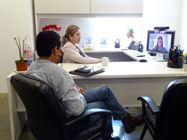 Culiacán, Sinaloa. La secretaria de Pesca y Acuacultura, Flor Emilia Guerra Mena, y el subsecretario de Pesca, Cesar Julio Saucedo, sostuvieron una reunión vía medios digitales con el equipo de Oceana México, integrado por la M.C. Renata Terrazas; M.C. Nancy Gocher y M.C. Mariana Aziz, para establecer una agenda de trabajo en temas comunes como restauración de los ecosistemas marinos, pesca sustentable y ordenada, e intercambio de conocimiento entre gobierno y organizaciones de la sociedad civil.