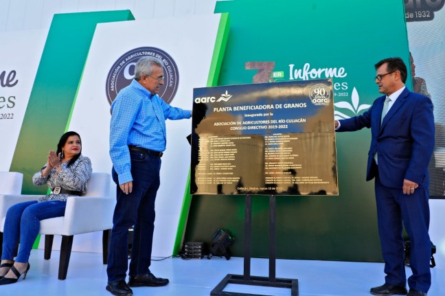•Tras el cierre del evento Rocha acompañó a los productores de la AARC a la inauguración de la Planta Beneficiadora de Granos, ubicada en las bodegas de la Asociación en la comunidad de Bariometo, en Navolato.