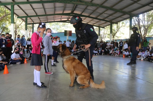 Culiacán, Sinaloa. Binomios canófilos de la Unidad Especializada y elementos del Grupo Élite de la Policía Estatal Preventiva, visitaron la escuela primaria Belisario Domínguez, al sur de la capital, para crear lazos de amistad con la presentación del Programa Preventivo Valorarte bajo el tema “Conoce a tu Policía”.
