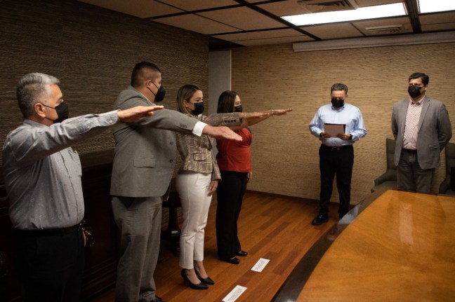 El Secretario General de Gobierno Enrique Inzunza Cázarez, tomó protesta este lunes a 4 nuevos funcionarios que se integran a la Comisión Estatal de Búsqueda de Personas de Sinaloa, entre los nuevos cargos están el de Mercedes Sandibel Félix Abitia como la nueva directora de la Coordinación de Acciones de Búsqueda, Alejandra Bojórquez Sepúlveda como directora de Análisis de Contexto y Procesamiento de Información, Manuel Santana Cortez Parra como Director Regional Zona Norte y Martín Salas Sánchez, como el jefe del Departamento Administrativo.