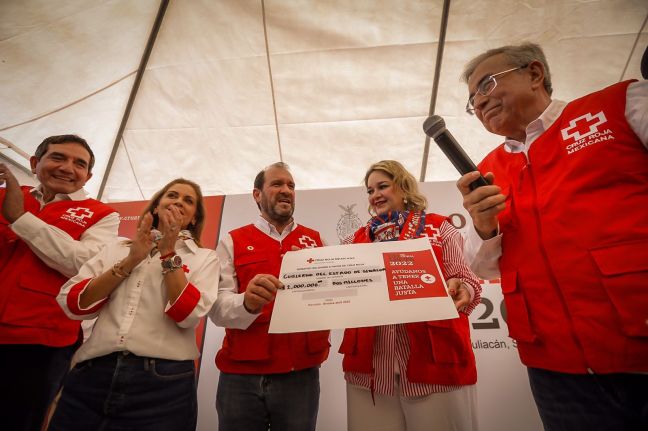 “Como gobierno vamos a estar cerca, apoyando a estas instituciones humanitarias, pues Cruz Roja se ha ganado por siempre el respeto de la humanidad”, dijo el gobernador Rocha, antes de entregar el cheque simbólico de dos millones de pesos, primeros recursos de la colecta.