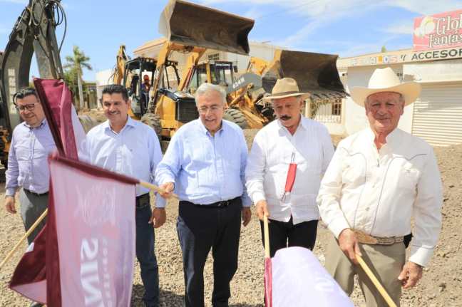 Como primera actividad, el mandatario estatal arribó a la sindicatura de Alhuey, donde fue recibido por el presidente municipal de Angostura, Miguel Ángel Angulo Acosta, para dar el banderazo de inicio de pavimentación de la calle 5 de Mayo, que se trata de una continuación de 300 metros de longitud, vialidad que quedará totalmente pavimentada con concreto hidráulico hasta donde topa con el dren agrícola.