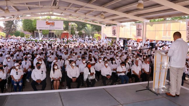 Ante centenares de trabajadores de la educación que portaban sus playeras blancas en alusión a la suma y apoyo a su sindicato, el Mtro. Madrid Uriarte, dijo que hoy, unidos se logra un sindicalismo directo, cara a cara, privilegiando el diálogo de altura como estrategia fundamental para el bienestar local, salarial y prestacional de los sindicalizados y como búsqueda de la consolidación de la nueva escuela mexicana.