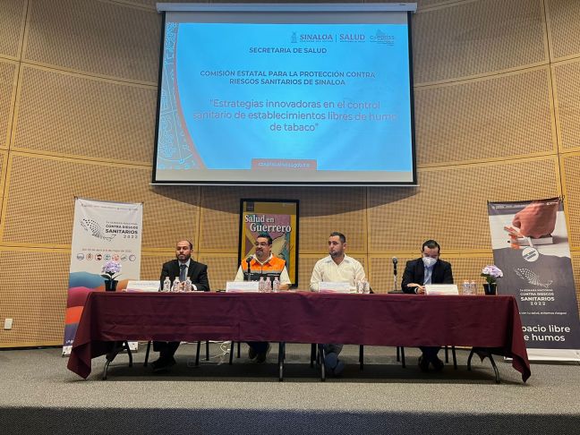 Lo anterior quedó de manifiesto durante la charla “Las estrategias innovadoras en el control sanitario de establecimientos libres de humo de tabaco”, en la que participó el titular de la Comisión Estatal para la Protección contra Riesgos Sanitarios de Sinaloa (Coepriss), Ing. Luis Alonso García Corrales.