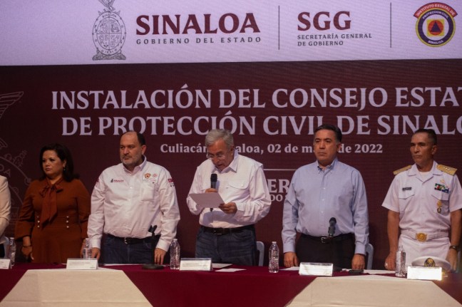 Acompañaron al gobernador en este evento de Instalación del Consejo Estatal de Protección Civil, el Secretario General de Gobierno Enrique Inzunza Cázarez, el director del Instituto de Protección Civil Héctor Félix Carrillo, representantes de la Marina Armada de México, Sedena y Guardia Nacional, así como las y los funcionarios del gabinete estatal, presidentas y presidentes municipales, además de los directivos de los cuerpos de auxilio y protección como Cruz Roja, Bomberos y representantes de la Comisión Nacional del Agua.