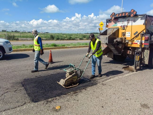 Asimismo, cuadrillas del Departamento de Conservación y Mantenimiento de Infraestructura acudieron al sector Bachigualato, con el propósito de rehabilitar la capa de rodamiento correspondiente al bulevar Calzada Aeropuerto, misma que presentaba daños en gran parte de su extensión.