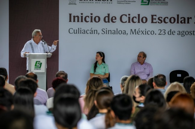 “Yo quiero llamarlos a los estudiantes y a los maestros, a la comunidad cobaense, para que se esfuercen por ser mejores, hay que superar lo que hemos hecho antes, y nosotros vamos a contribuir para que el Cobaes cada día sea mejor, desde su infraestructura, sus laboratorios, sus centros de cómputo, sus aulas, el debido confort que debe de tener un estudiante en clase, pues aquí en Sinaloa no es un lujo tener un aire acondicionado en el aula, es una necesidad”, precisó.