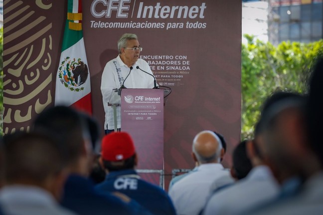 “Me da mucho gusto estar de nuevo en Sinaloa, en este estado progresista, de gente trabajadora, gente buena y encontrarnos aquí también con trabajadores de Sonora, de Baja California, de Baja California Sur, de toda esta región de nuestro país. Es muy claro el mandato que tenemos, se trata de llevar el Internet a las comunidades más apartadas, así como lo hicieron sus antepasados, los trabajadores electricistas que una vez que el presidente Adolfo López Mateos tomó la decisión de nacionalizar la industria eléctrica, se dedicaron esos trabajadores a electrificar a México”, señaló.