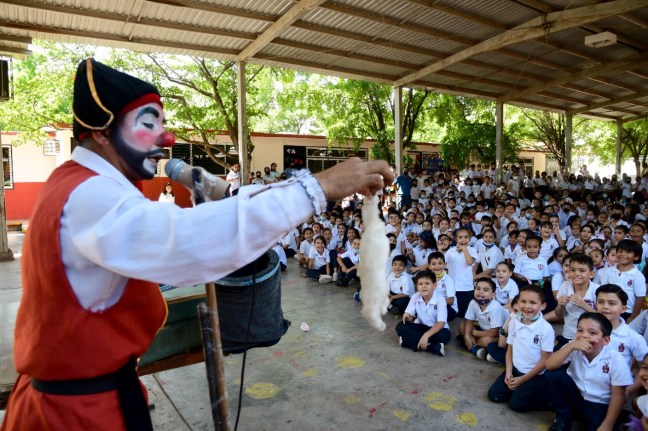 Culiacán, Sin. En la segunda semana de los festejos por el Aniversario de Culiacán, la magia y diversión arribó a la primaria Guadalupe Ramírez Aguilar esto a través de la presentación del cuentacuentos, Claudio Trejo.