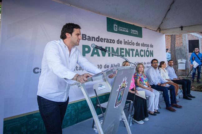 Culiacán, Sin. A fin de mejorar sus condiciones actuales y generar un mayor bienestar a más de 600 habitantes, las calles 10 de Abril y avenida Artículo 12 en la colonia Heraclio Bernal, así como la calle Quinta en la colonia 10 de Abril, serán pavimentadas, es por ello que el alcalde Juan de Dios Gámez Mendívil, dio el banderazo de inicio de estos trabajos.