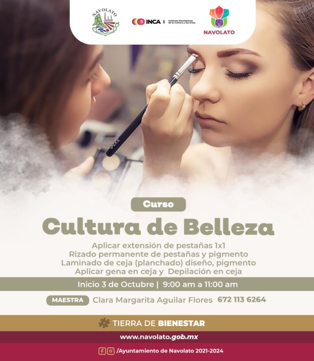La Escuela Municipal de Artes y Oficios ofrece cursos de tendencia, el más reciente es el curso de aplicación de extensión de pestañas 1×1, rizado permanente de pestañas y pigmento, laminado de ceja (planchado) diseño, pigmento, aplacamiento de gena en ceja y depilación en ceja, en un horario de 9:00A.M. a 11:00A.M. para mayores informes para este curso comunicarse al número 672 113 6264. Y de manera general para el resto de los cursos comunicarse al número 672 109 7431.
