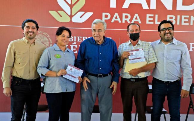 Durante el evento se hizo entrega simbólica del apoyo a los ciudadanos Alma Eugenia Cebreros Ramos y Rafael Ochoa Félix, en representación de todos los beneficiarios.