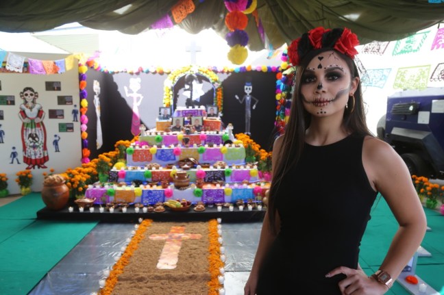 Culiacán, Sinaloa. Tradición, creatividad y esfuerzo colectivo fueron algunas de las características que se unieron para el montaje de altares de muertos en la Secretaría de Seguridad Pública de Sinaloa como parte de un “Concurso de Altares”.