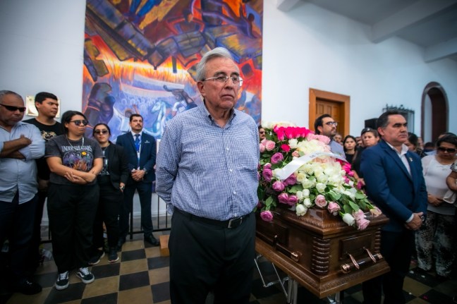 Tras montar guardia de honor en el féretro, el Ejecutivo Estatal brindó sus condolencias a toda la familia de Quiñónez Payán, reconociendo ante la comunidad universitaria encabezada por el Rector de la UAS, Jesús Madueña Molina, su amplia contribución en la consolidación de los derechos de los trabajadores, cuyos beneficios hasta el día de hoy se encuentran plasmados en el Contrato Colectivo de Trabajo.