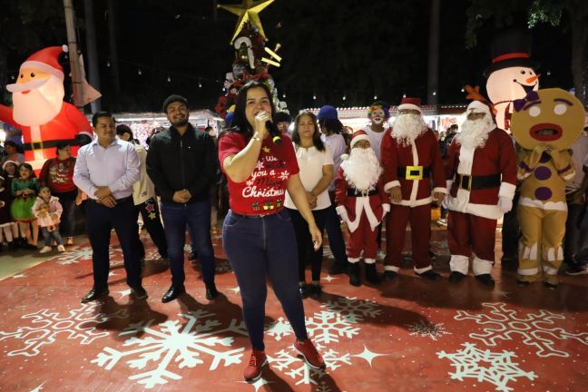 Navolato, Sinaloa, **Este sábado la Presidenta Municipal de Navolato, Margoth Urrea Pérez, y el Presidente del Sistema DIF Municipal, Sergio Uriel Barraza Urrea, encabezaron el encendido del Árbol Navideño Municipal en presencia de más de mil personas que se dieron cita frente al Palacio Municipal para pasar un momento agradable en familia.