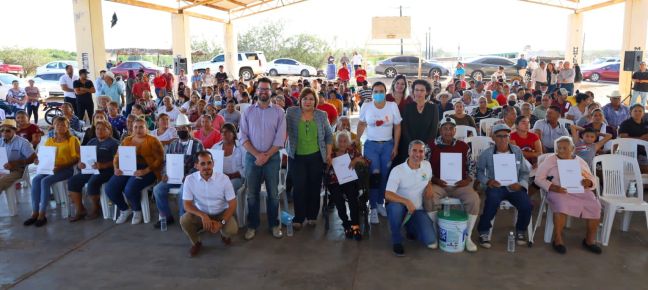 Navolato, Sinaloa. Este martes la Presidenta Municipal de Navolato, Margoth Urrea Pérez, encabezó junto al Director General del Instituto Nacional del Suelo Sustentable (INSUS), Alfonso Iracheta Carroll, Secretaria de Bienestar y Desarrollo Sustentable del Estado, María Inés Pérez Corral, y el Delegado en Sinaloa del INSUS, Crisantos Cebreros Favela, la entrega de 255 escrituras a habitantes de la comunidad de Las Puentes.