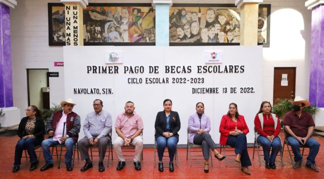 Navolato, Sinaloa. Este martes se realizó el primer pago del programa de becas escolares 2022-2023 a 1,745 estudiantes de educación básica, media superior y superior, así como a personas con discapacidad, hijas e hijos de policías caídos, de bomberos y del pentathlon, por los meses de septiembre a diciembre del año en curso, en un evento encabezado por la Presidenta Municipal, Margoth Urrea Pérez.