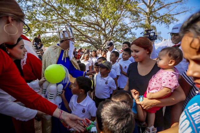 Durante la posada en la que convivió con decenas de niños y sus familias, se repartieron 1 mil 500 juguetes diversos, 40 bicicletas, y aquí hizo el compromiso de mandar más bicicletas para algunos niños que no alcanzaron. Además, se entregaron 60 abanicos, 250 colchonetas e igual número de cobijas, 120 cubetas de impermeabilizante y 53 catres.