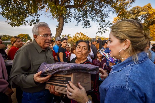 Jesús María, Culiacán, Sinaloa. Acompañado por su hija, la presidenta del Sistema DIF Sinaloa, Eneyda Rocha Ruiz, el gobernador Rubén Rocha Moya convivió con cientos de familias de varias comunidades rurales pertenecientes a la sindicatura de Jesús María, del municipio de Culiacán, en una amena posada navideña, donde los casi dos mil niños que asistieron con sus familias, recibieron dulces, juguetes y bicicletas.