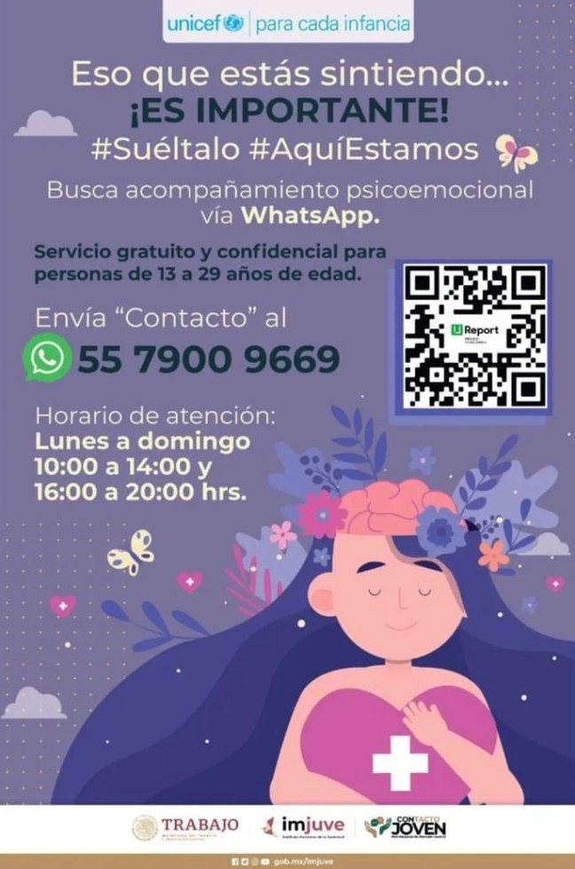 En Contacto Joven del ISJU, los jovenes podrán recibir acompañamiento psicológico de manera gratuita_La depresión la tristeza y la ansiedad es algo que los jóvenes vivimos todos los días.Es por esto que el Instituto Sinaloense de la juventud dirigido por Saúl Gerardo Meza López dio a conocer la campaña acompañamiento psicológico gratuito.La cual consiste en un acompañamiento confidencial y personalizado de lunes a viernes por la aplicación de WhatsApp.Enviando la palabra «contacto» al 55 7900 9669 podrás recibir atención psicológica gratuitaEl horario de atención es de 10am a 2pm y de 4pm a 8pmPodrán utilizar esta herramienta jóvenes de 13 a 29 años