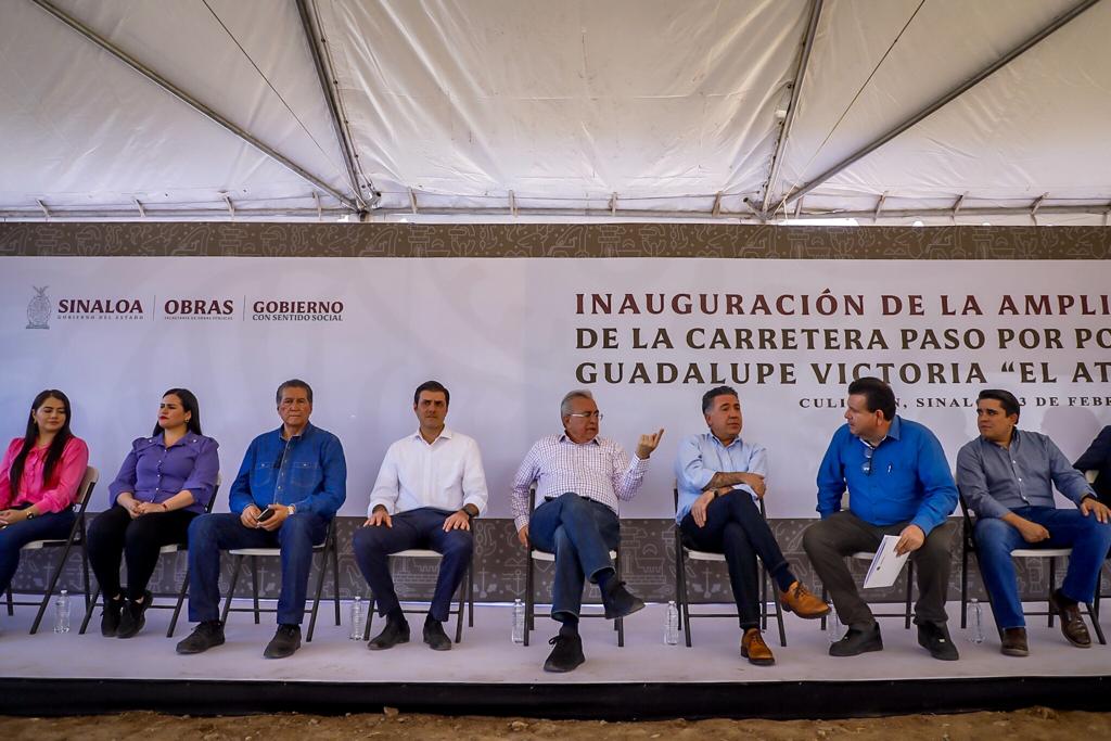 Cumple Rocha Moya compromiso con pobladores de El Atorón al entregar ampliación de la carretera principal