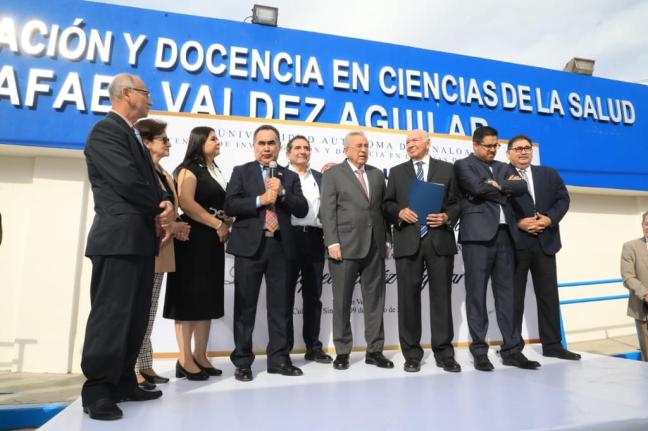En ese mismo lugar, el gobernador Rocha y el rector Madueña, momentos antes también develaron el nombre de la Unidad de Anatomía y Patología “Dr. Bartolo López Quintero”, en homenaje póstumo también a su creador, quien falleció en el 2021 a causa del COVID-19, honor que agradeció su señora viuda, la doctora Isabel Peñuelas Fonseca.