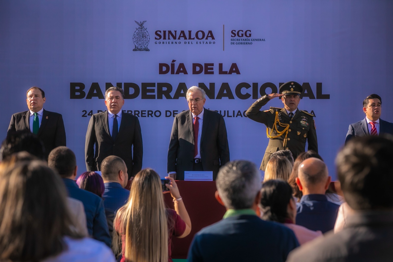 Encabeza Rocha ceremonia por el aniversario del Día de la Bandera