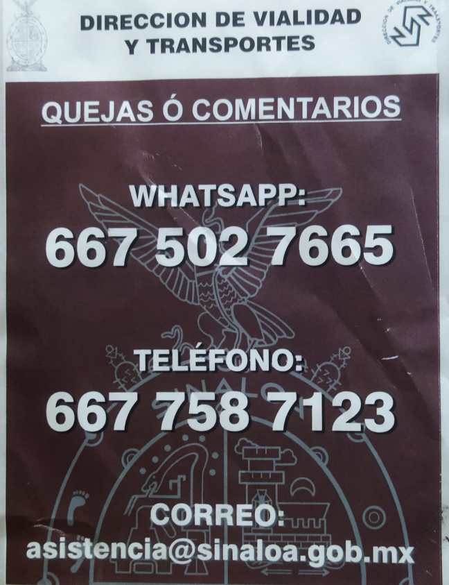 Además de molestias que ocasionan estos, operativos, el funcionario invitó a los ciudadanos a presentar quejas o formular comentarios relacionados con el transporte público a través del teléfono 6677587123, la línea de What´sApp 6675027665 o el correo electrónico asistencia@sinaloa.gob.mx