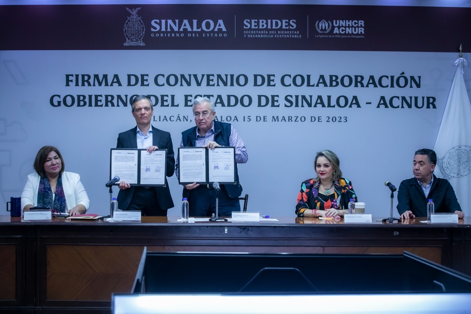 Rocha signa convenio con la ACNUR para atender el desplazamiento forzado interno