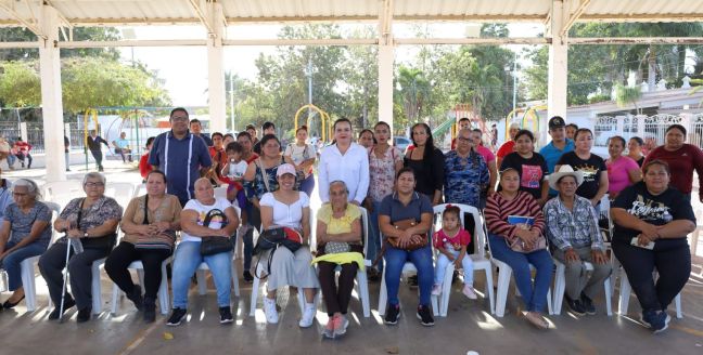 Navolato, Sinaloa, marzo de 2023. La Presidenta Municipal de Navolato, Margoth Urrea Pérez, se reunió este jueves con beneficiarios de obras de construcción de la comunidad de Bachimeto.