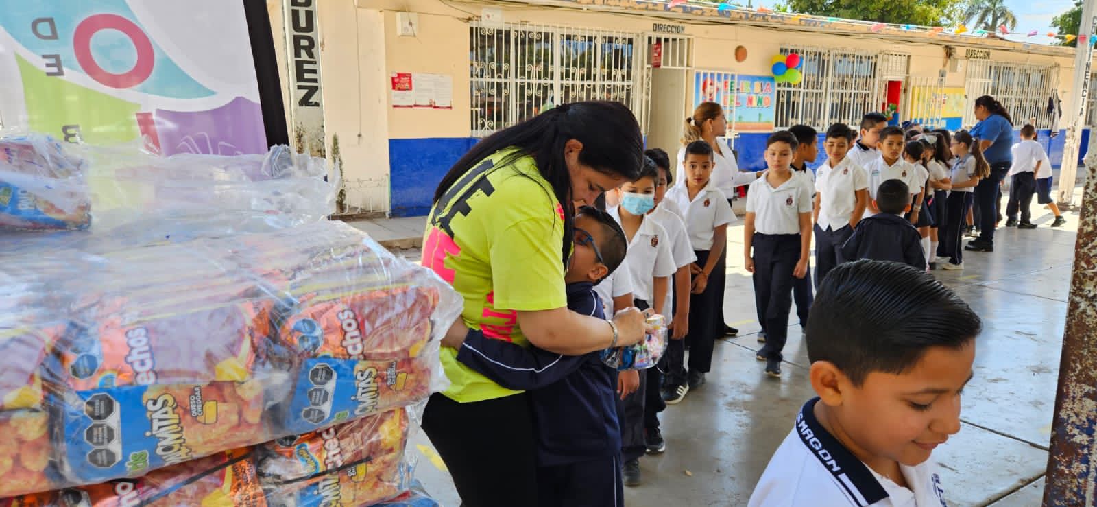 Margoth Urrea Pérez continuó con los festejos del Día del Niño este martes, entregó más de 2 mil bolsas de dulces a niñas y niños navolatenses