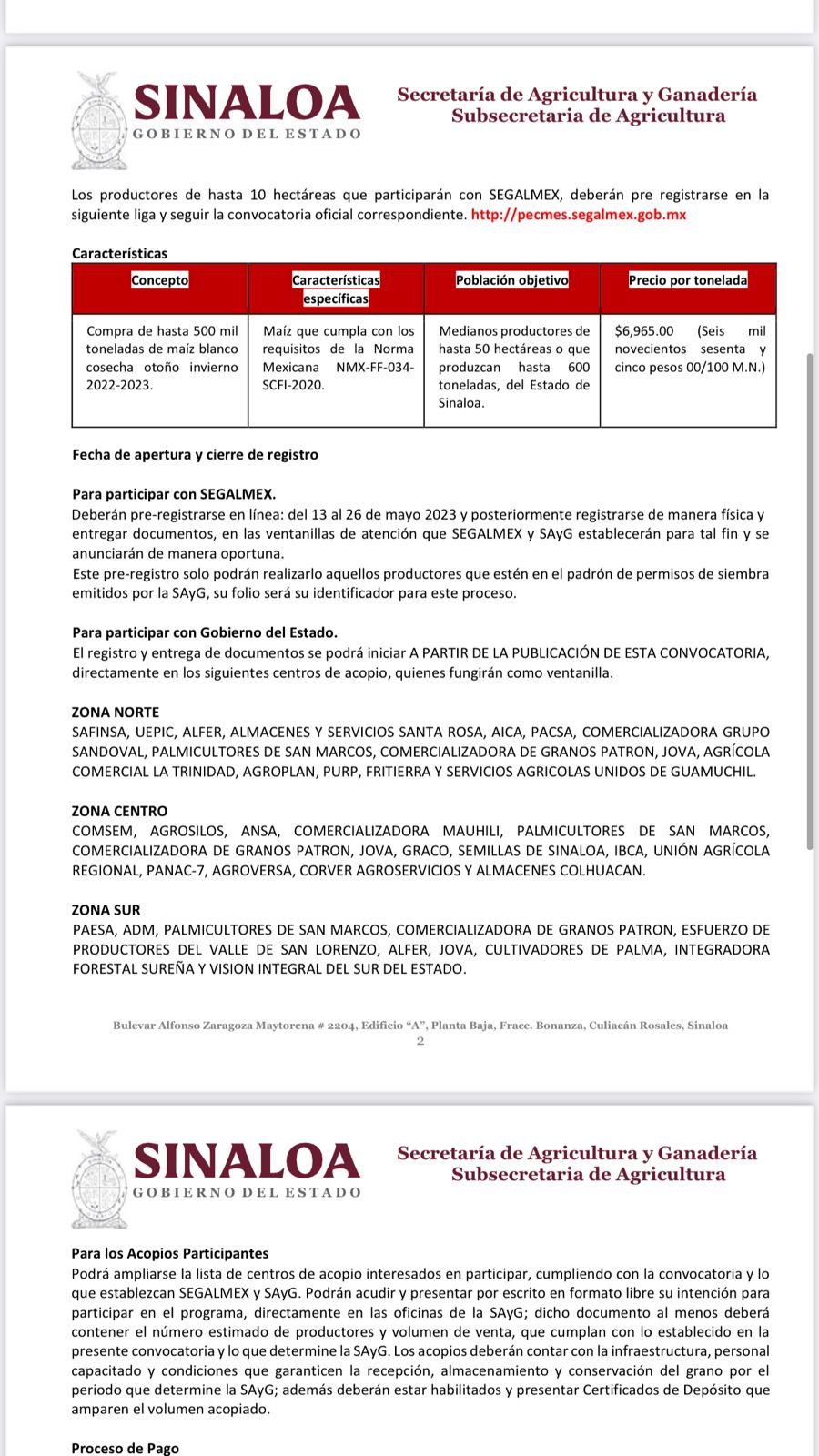 A partir de este lunes Gobierno del Estado inicia proceso de compra de 500 mil toneladas de maíz
