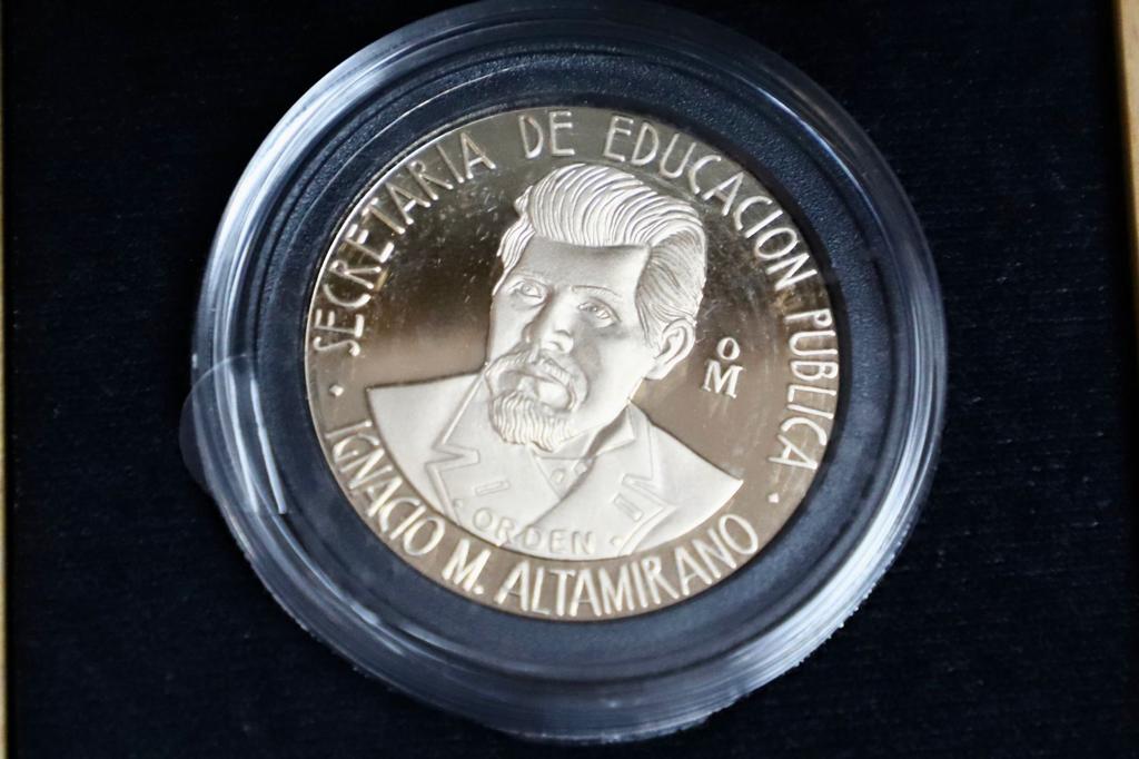 La medalla “Maestro Ignacio Manuel Altamirano” se otorga a las y los maestros con una trayectoria de 40 años de servicio y consiste en una medalla de oro, un diploma de reconocimiento y un estímulo económico de 95 mil 404 pesos.