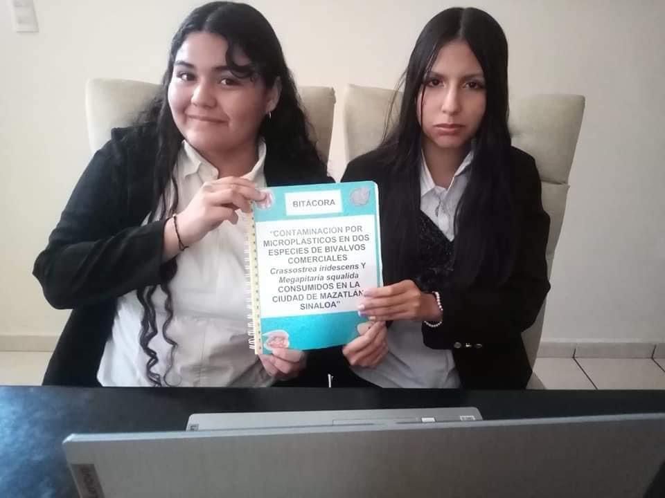 El otro proyecto ganador fue «Contaminación por microplástico en dos especies de bivalvos comerciales Crassostrea iridescens y Megapitaria squalida consumidos en la ciudad de Mazatlán Sinaloa”, de las alumnas del plantel 38 de Mazatlán, Zyanya Elizabeth Herrera Rodríguez y Mabely Guadalupe López López, quienes estuvieron asesoradas por la maestra Cinthya Rosalía Lizárraga Osuna para la categoría de Ciencias Ambientales.