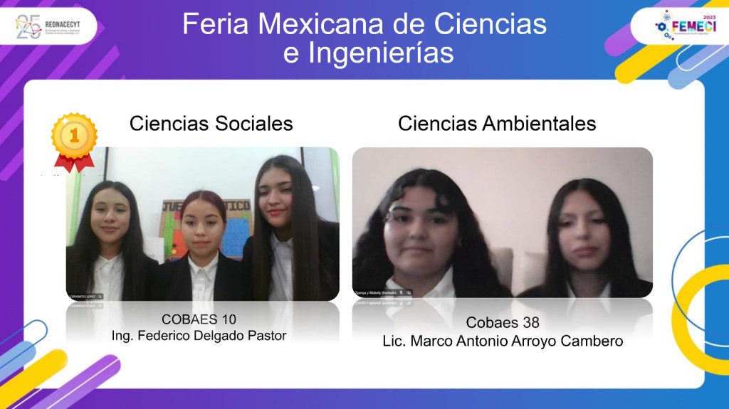 Culiacán, Sinaloa, a mayo de 2023. – En la Feria Nacional de Ciencias e Ingenierías (FENACI) 2022, la cual se llevó a cabo del 8 al 12 de mayo de 2023, en la ciudad de Villa Hermosa, Tabasco, de manera virtual, dos equipos integrados por alumnas de Colegio de Bachilleres del Estado de Sinaloa (COBAES), quienes fueron parte de la delegación Sinaloa en nivel medio superior, ganaron dos primeros lugares de las cuatro áreas del conocimiento en las que se desarrolló el certamen.