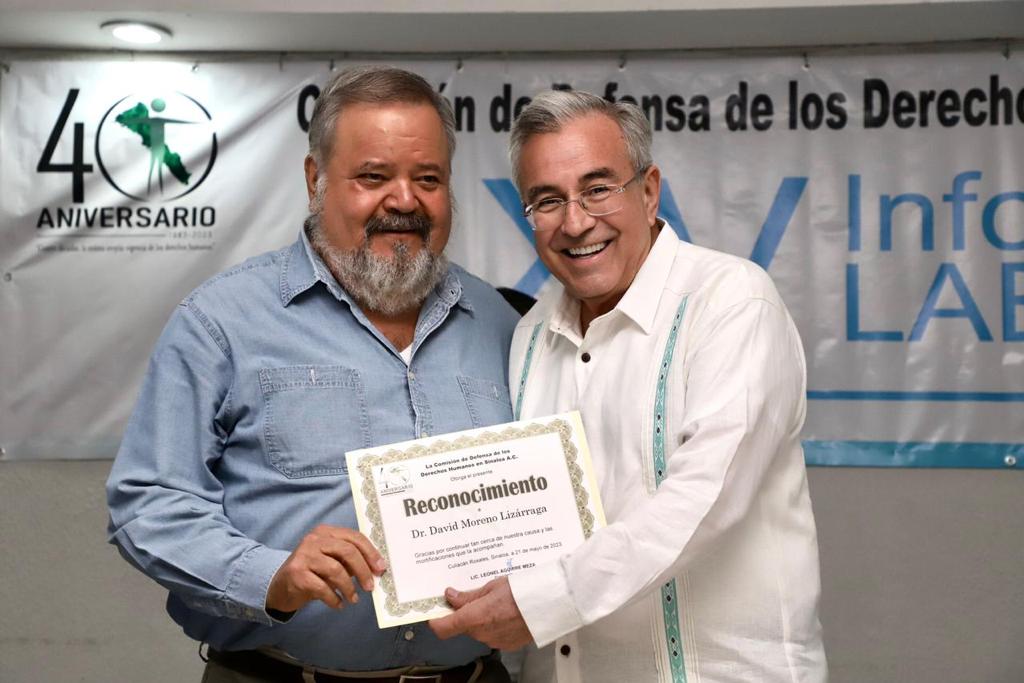 Por su parte, Óscar Loza Ochoa, fundador de la Comisión de Defensa de Derechos Humanos hizo entrega del reconocimiento como fundador de la comisión de los derechos humanos al gobernador Rubén Rocha Moya y agradeció la atención que el mandatario estatal toma ante este importante tema.