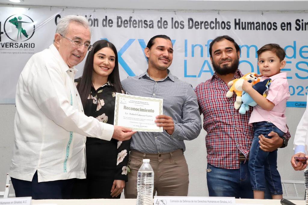 La Comisión de Defensa de los Derechos Humanos en Sinaloa entregó un reconocimiento al gobernador Rocha como miembro fundador del organismo.
