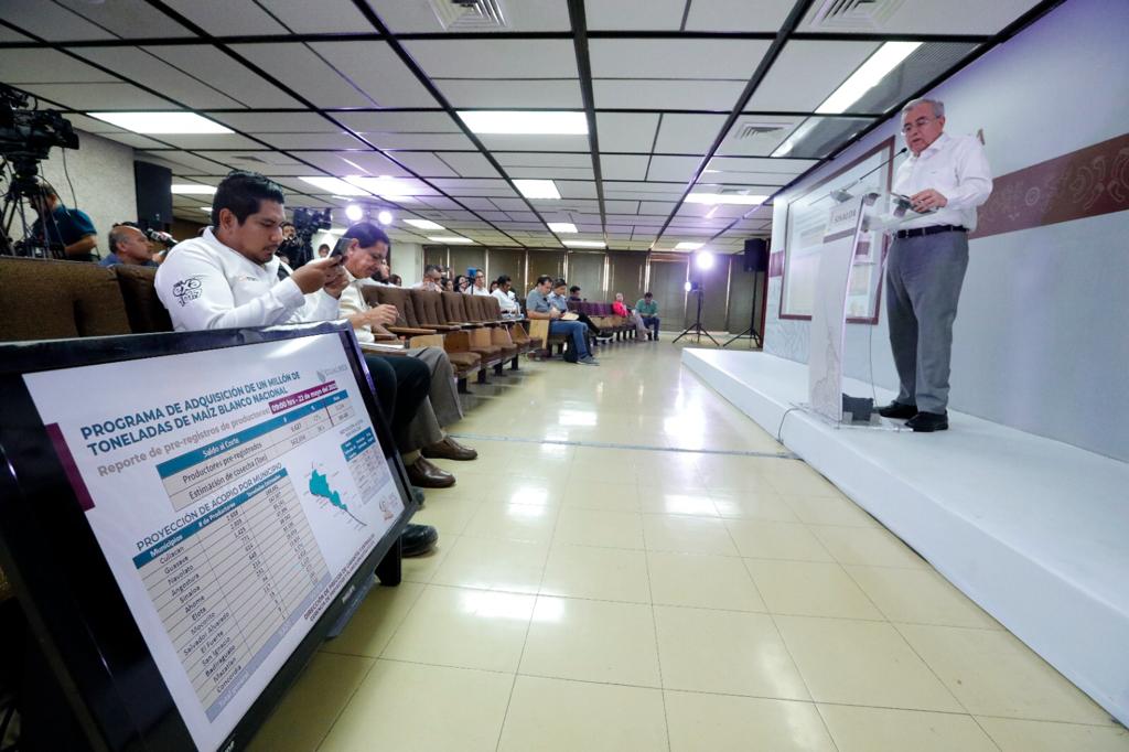 “En eso hemos avanzado, por lo pronto debo decirles que el padrón de hasta 10 hectáreas tenemos preinscritos, ellos ya han manifestado ante Segalmex que venderán su cosecha, 9 mil 627 productores que representan 562 mil 656 toneladas. Esto es el 72 por ciento del padrón total de los productores de 10, en el entendido que solo basta con que se vayan acreditando, vayan pidiendo su registro y la adquisición ya está programada por Segalmex, el procedimiento es que los productores entregan en una de las bodegas que ya están publicadas, que son bodegas habilitadas”, informó.