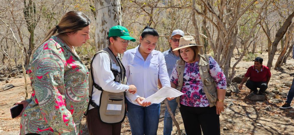 Navolato, Sinaloa a Mayo de 2023.- La Presidenta Municipal de Navolato, Margoth Urrea Pérez, y la Secretaria de Bienestar y Desarrollo Sustentable del Gobierno de Sinaloa, María Inés Pérez Corral, realizaron un recorrido por algunas áreas de la sindicatura de Juan Aldama “El Tigre”, con la finalidad de proteger zonas de el cerro de El Tecomate y sus alrededores, que están llenas de cultura e historia, además cuentan con una gran biodiversidad, única en especies de flora y fauna.