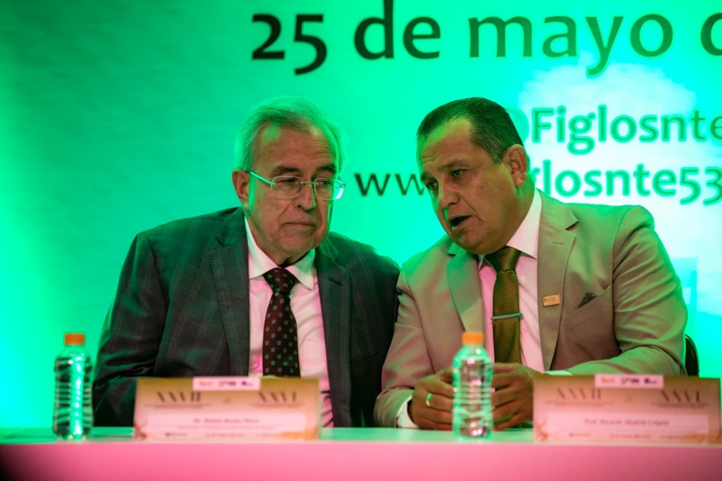 “Muchas gracias señor gobernador por estar donde su origen siempre se ha considerado, en el magisterio, un hombre amigo de los maestros, un hombre que atiende al magisterio y que su esencia real nunca la ha dejado, y estoy seguro, nunca la habrá de dejar”, dijo.