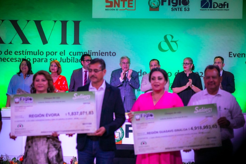 Luego de hacer entrega de los cheques a ocho parejas de maestros, una por cada región del estado, en representación de los 238 docentes que recibieron este beneficio, el gobernador Rocha destacó la labor que a través de varias décadas de servicio brindaron para formar buenos ciudadanos.