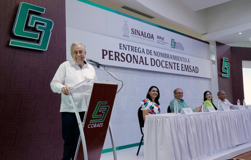 Por su parte el director general de COBAES Santiago Inzunza Cázarez, agradeció al gobernador ya que en su gobierno se ha prestado mayor atención a la educación y que gracias a esto es posible la entrega de plazas definitivas para las y los maestros.